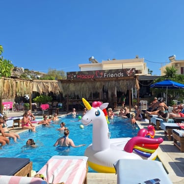 Relax by the pool, enjoy the sunshine, and soak up the friendly atmosphere that makes Happy Friends special.